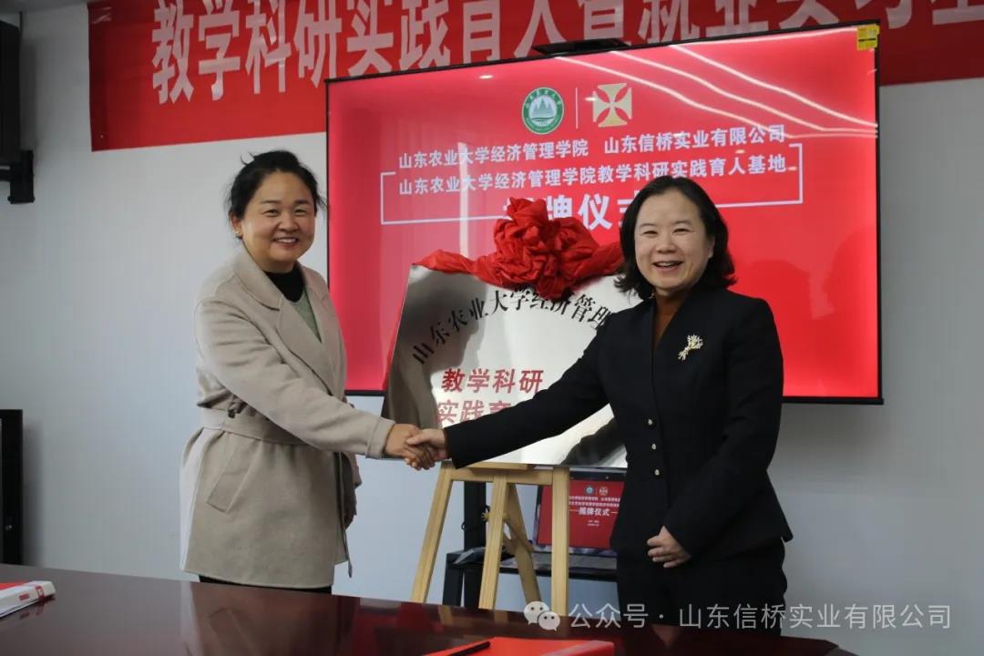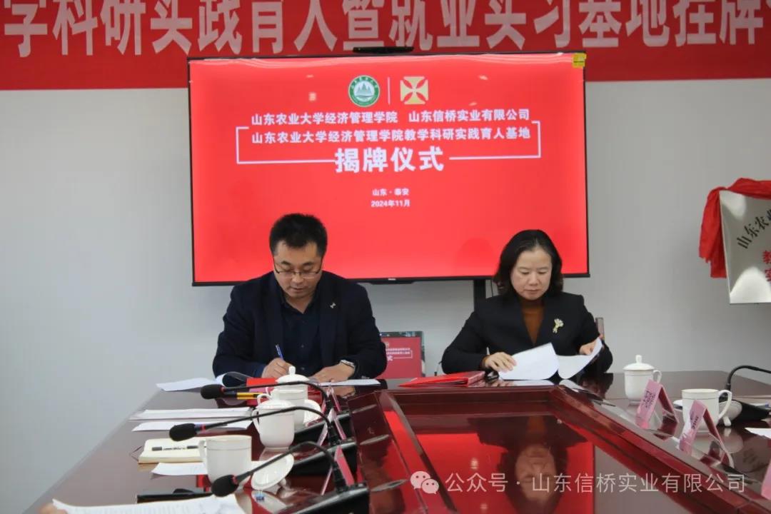 11.28日,山東農(nóng)業(yè)大學(xué)經(jīng)管學(xué)院與山東信橋?qū)崢I(yè)有限公司在信橋公司舉行了教學(xué)科研實踐育人暨就業(yè)實習(xí)基地掛牌儀式。
